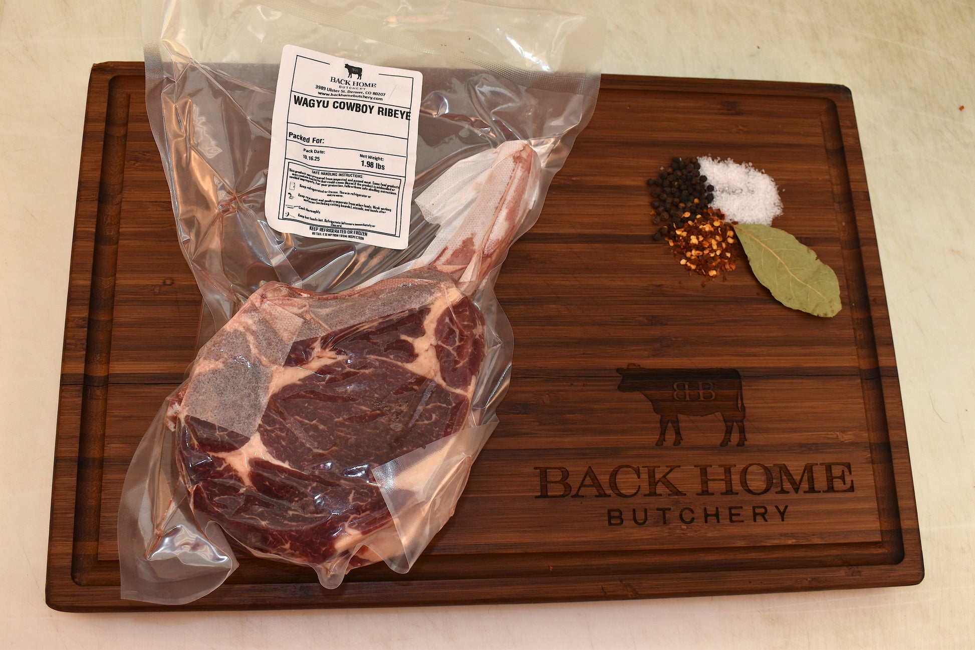 Hand-cut by Back Home Butchery, this Cowboy Ribeye delivers deep Wagyu tenderness with the hearty, high-country flavor that makes Colorado beef unforgettable.